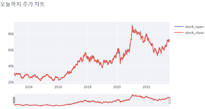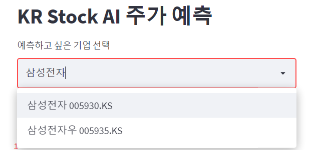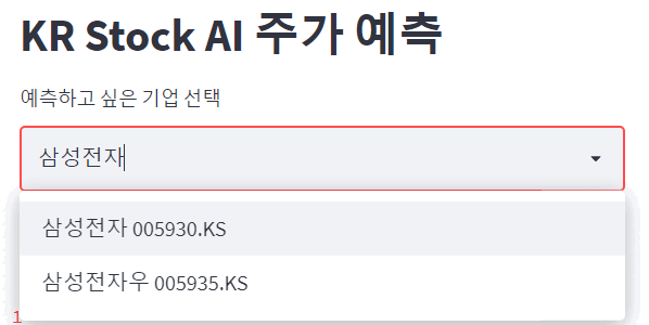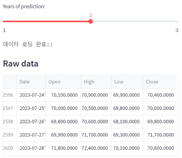 기업과 예측 기간을 선택하면 기업의 10년 전 주가 데이터를 불러옵니다.